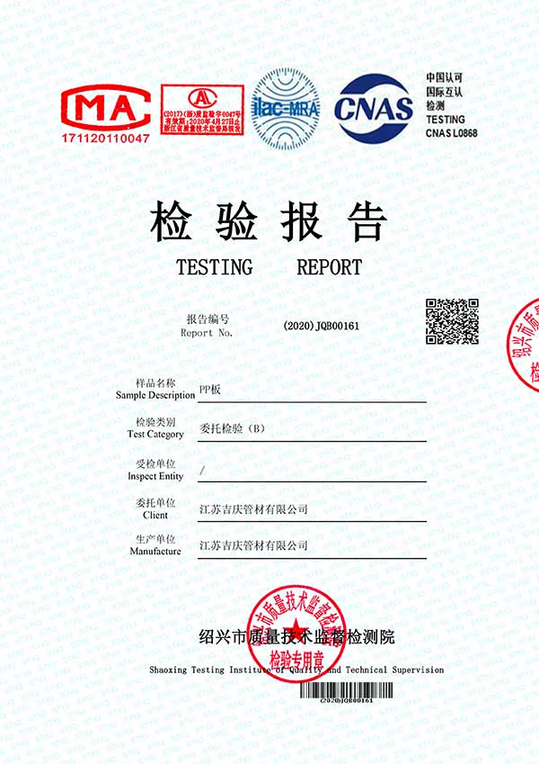 江蘇吉慶管材集團有限公司創(chuàng)辦于2010年2月,是pp管,pp管材,pp管件,pp風管,frpp管,frpp管材,pph管,pph管材,pph管件,pph風管,pvdf管,pvdf管材,pp儲罐,pp板材的專業(yè)化生產(chǎn)企業(yè)。公司占地30余畝,擁有各類資產(chǎn)8000余萬元,專業(yè)技術人員20余人,管材生產(chǎn)線10條,管件生產(chǎn)線11條,具備了10000余噸各類防腐塑料制品的年生產(chǎn)能力。公司通過了ISO9001-2000質量體系認證,同時被評為AAA信用單位,2018年公司被評為高新技術企業(yè),此后陸續(xù)取得安全生產(chǎn)管理證書等榮譽。公司位于水上花園城市----江蘇省揚中市八橋鎮(zhèn)永福路18號,交通便捷,可直接導航至公司園區(qū)內。公司全體員工將以高度的敬業(yè)精神,嚴格的質量控制理念和科學的管理方法,及時周到的服務,竭力為我國塑料管道在各領域的推廣和應用作出更大的貢獻!